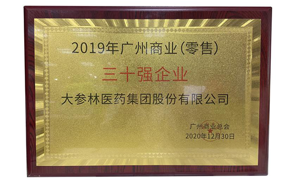大參林入圍2019年廣州商業(yè)(零售)三十強(qiáng)企業(yè)